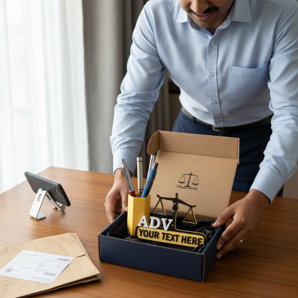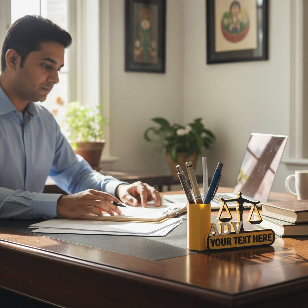 Enhance the workspace of your favorite advocate or legal professional with our beautifully crafted, personalized pen stand. Designed not just for utility but also as a symbol of justice and dedication, this desk organizer is an essential addition to any law office or home study. Keep pens and other small stationery organized while showcasing a unique touch of professionalism.