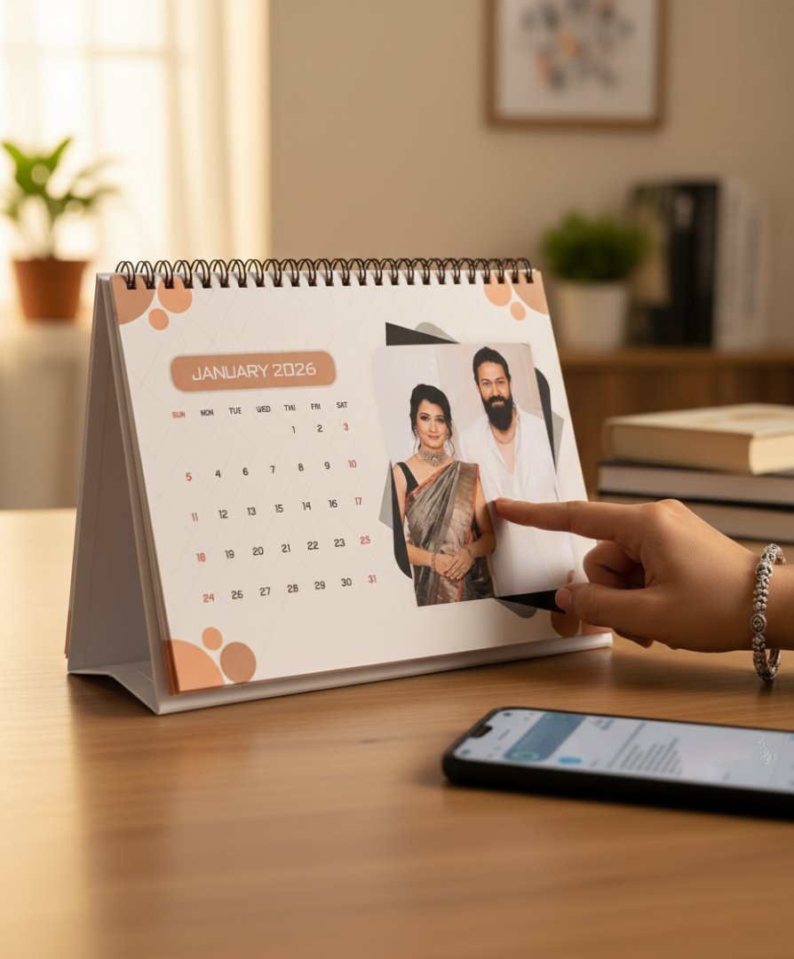 A: By default, photos are placed randomly. If you wish to specify photos for specific months or highlight special dates, there is an additional charge of βΉ30.