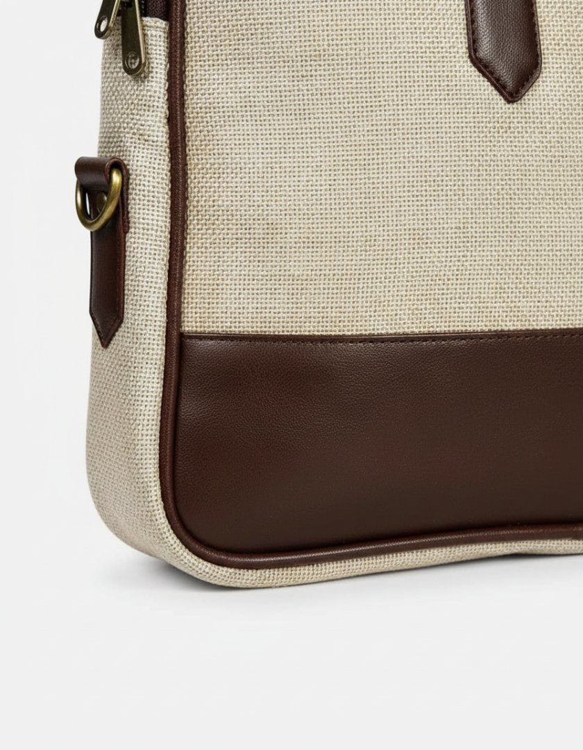 🎨 Classic Color Combo: Features a versatile natural jute hue complemented by rich brown PU leather accents.