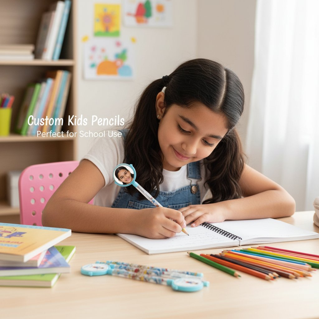 Make every school day or creative session extra special with our vibrant set of 5 custom kids pencils. Designed to bring a smile to your little one's face, each pencil is a blend of fun and functionality!