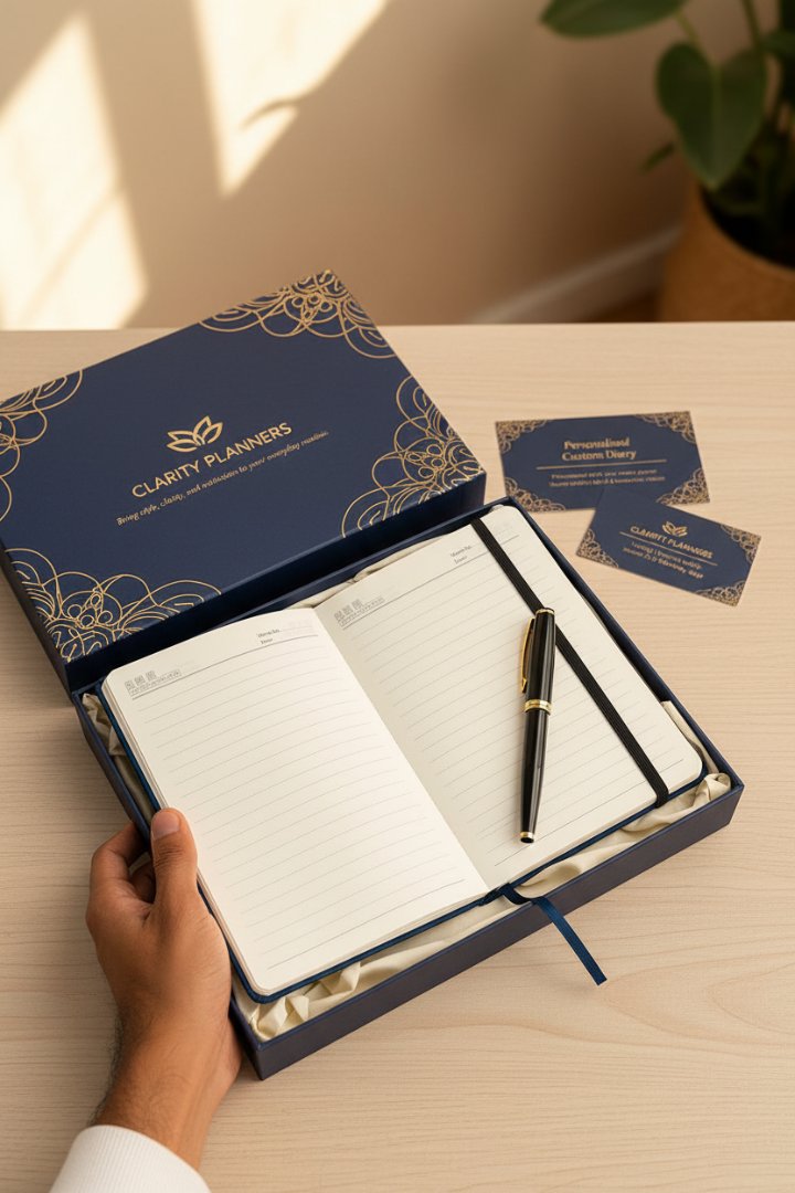Bring unparalleled style, clarity, and motivation to your everyday routine with our exquisite Personalised Custom Daily Planner. Designed for individuals who appreciate elegance and efficiency, this diary is more than just a notebook – it's your personal assistant, creative space, and daily motivator rolled into one beautiful package.