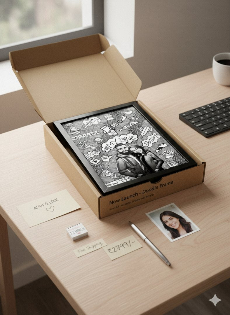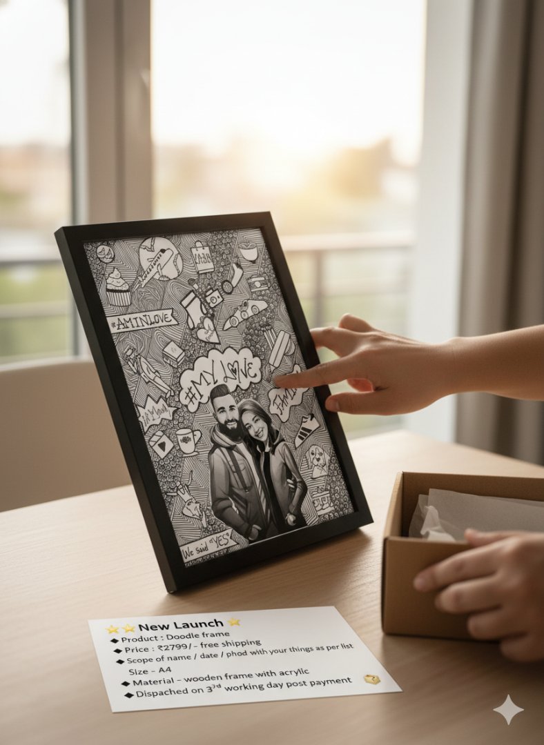 Celebrate your unique journey, love story, or family moments with our exquisite Custom Personalized Doodle Frame. This isn't just a frame; it's a bespoke piece of art, meticulously crafted to tell your story through a delightful collection of doodles, names, dates, and even a central photo of your choice. A truly special way to immortalize cherished memories! ✨