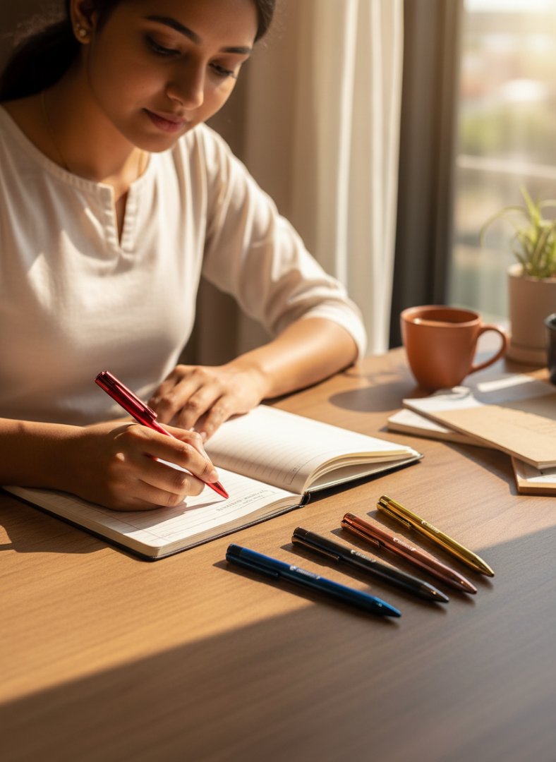 A: The pens feature a durable metal body with a lustrous glaze finish, ensuring both elegance and longevity for everyday use.