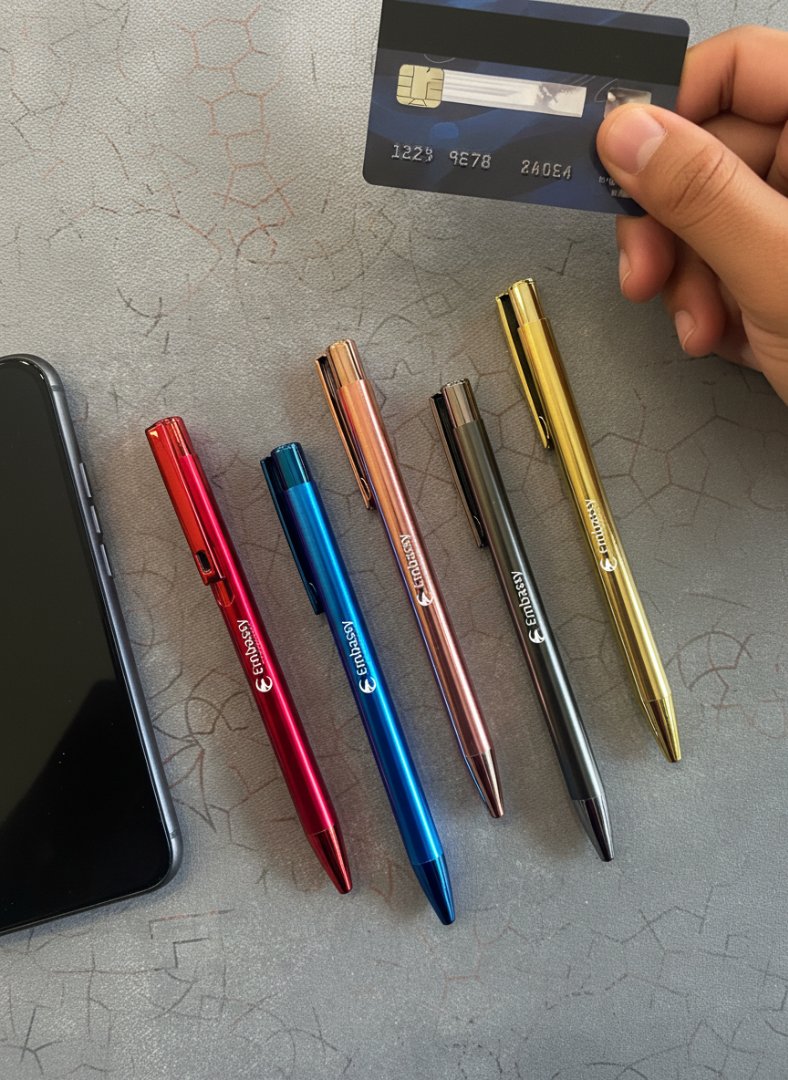 A: You can customize these pens with your company logo, brand name, or individual names. The customization is expertly engraved onto the pen's surface for a premium and durable finish.