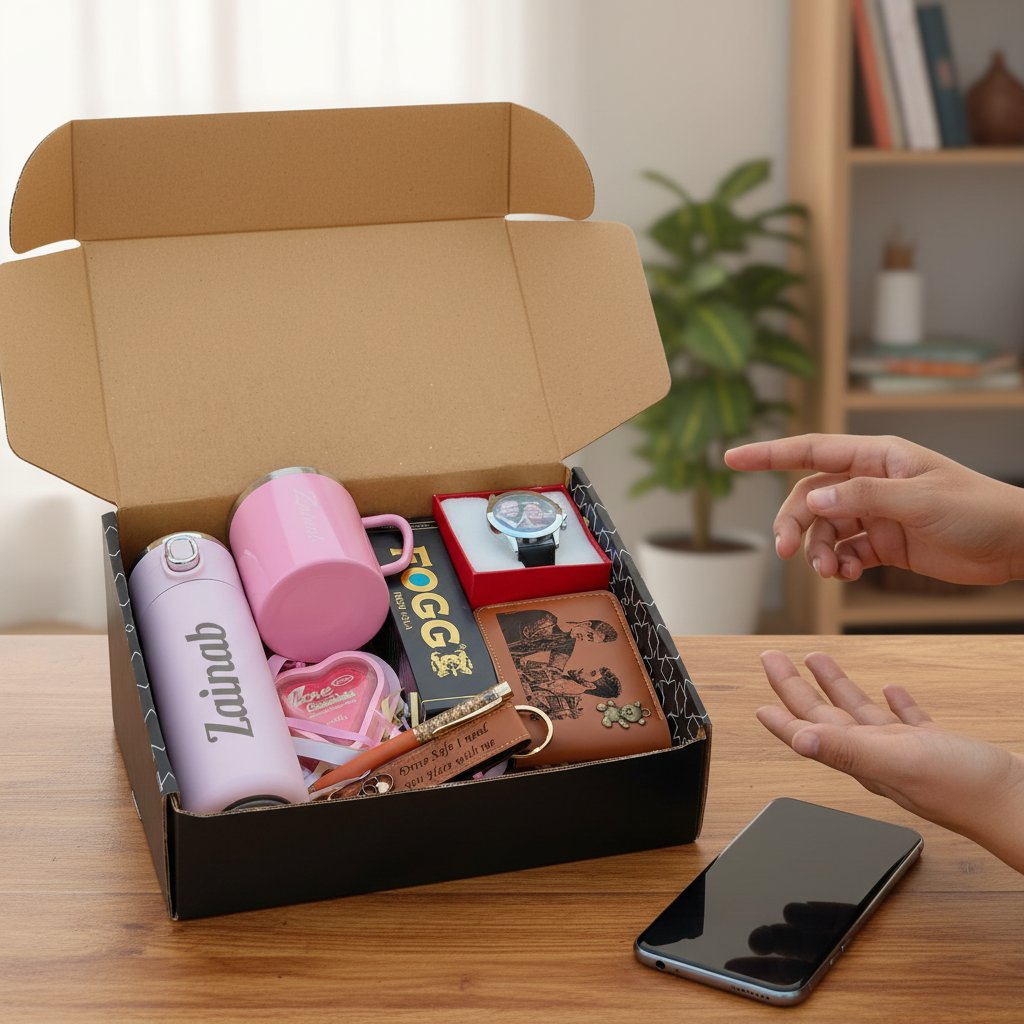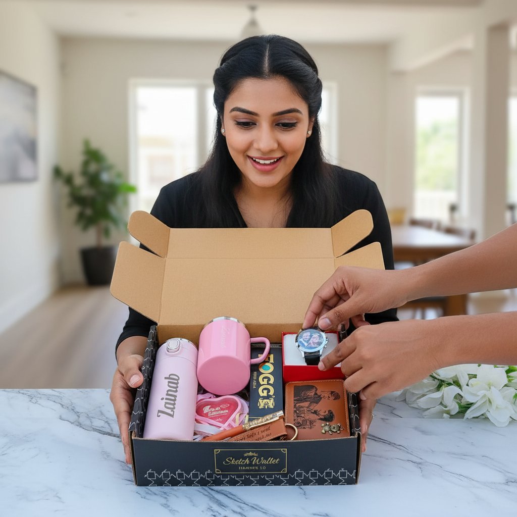 Looking for a present that truly stands out? The Sketch Wallet Hamper 1.0 is more than just a gift; it's an experience of thoughtful personalization. Imagine their face lighting up as they discover items customized specifically for them – a wallet with their photo, a watch with a special memory, and a bottle bearing their name. It's suitable for partners, friends, family members, or colleagues, making it an ideal choice for any celebration. With high-quality products and bespoke touches, this hamper shows you put extra thought into their special day. Plus, it comes beautifully packaged in a premium box, ready to present!