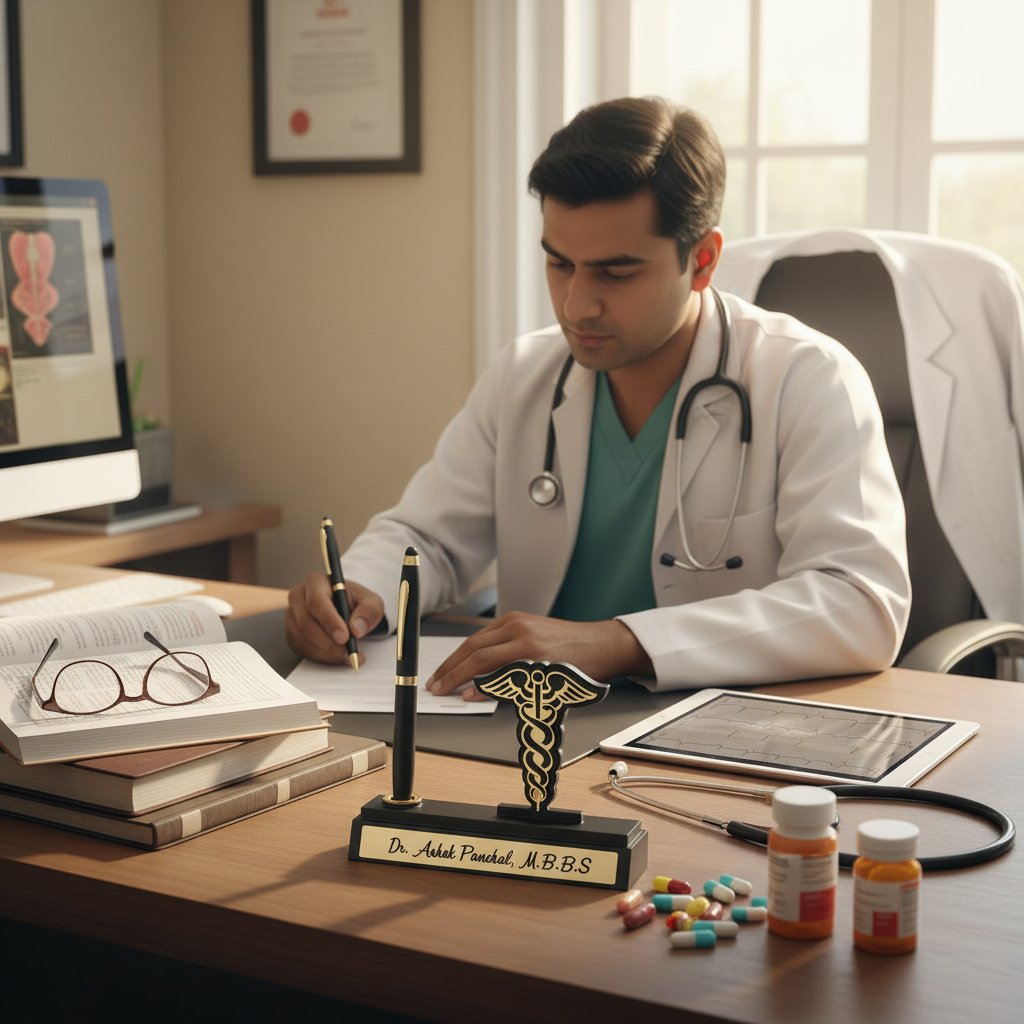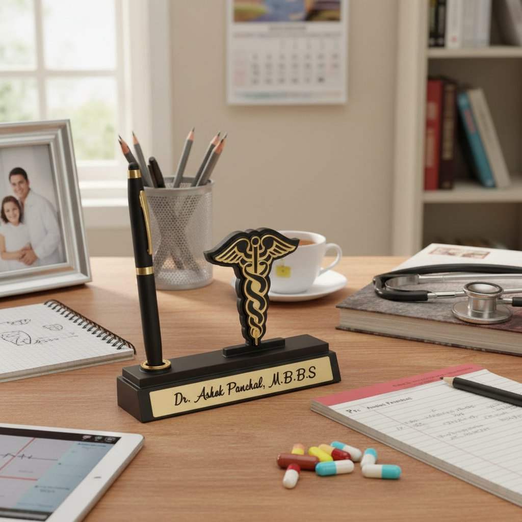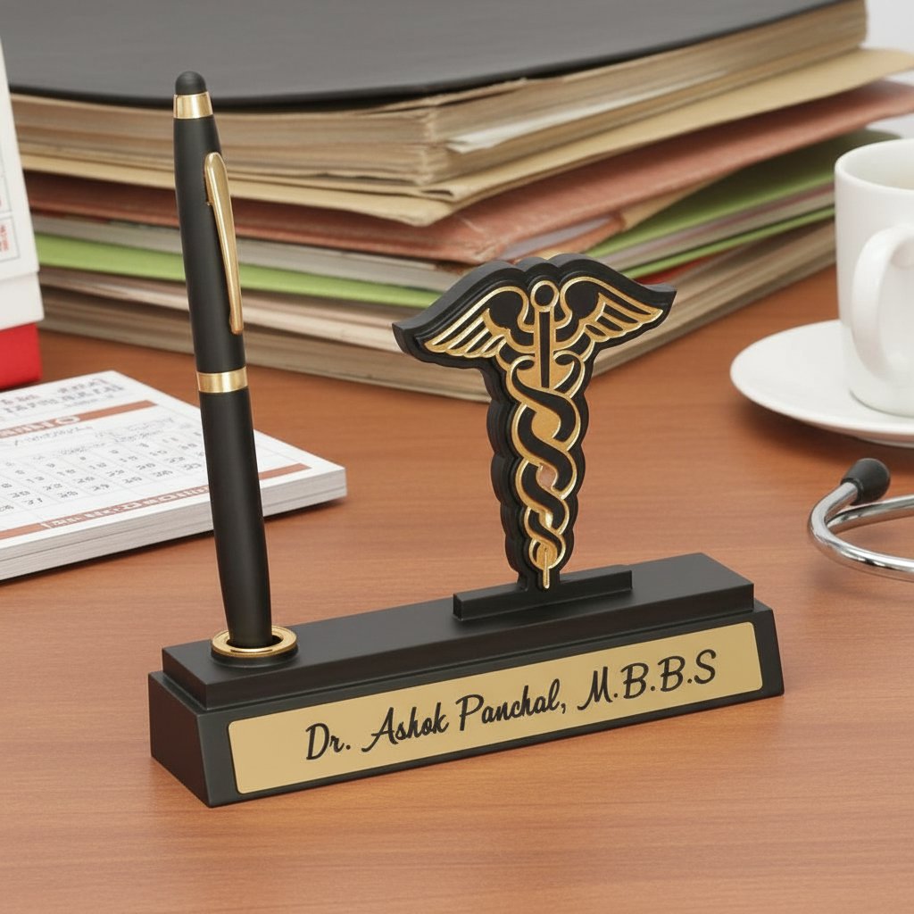 Looking for a truly special and memorable gift? Our Personalized Pen Stand cum Table Top is an ideal choice for any occasion, especially for professionals like Doctors, CAs, and Advocates. It's more than just a desk accessory; it's a symbol of recognition, achievement, and appreciation. Imagine the joy of receiving a high-quality, custom-made item that proudly displays your name and profession. Itβs perfect for: