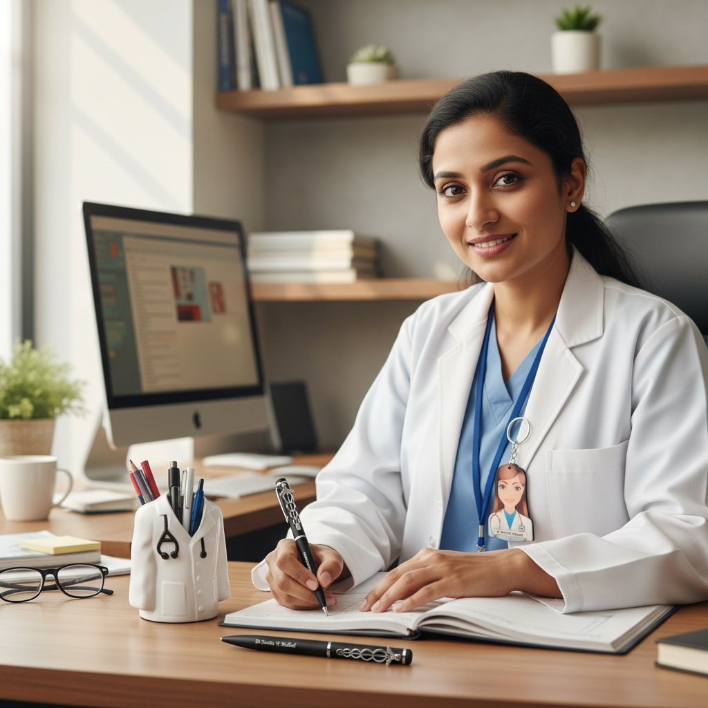 ⭐ 1 High-Quality Doctor Logo Metal Pen: A sleek, durable metal pen featuring a subtle doctor's emblem, customizable with a name and designation.