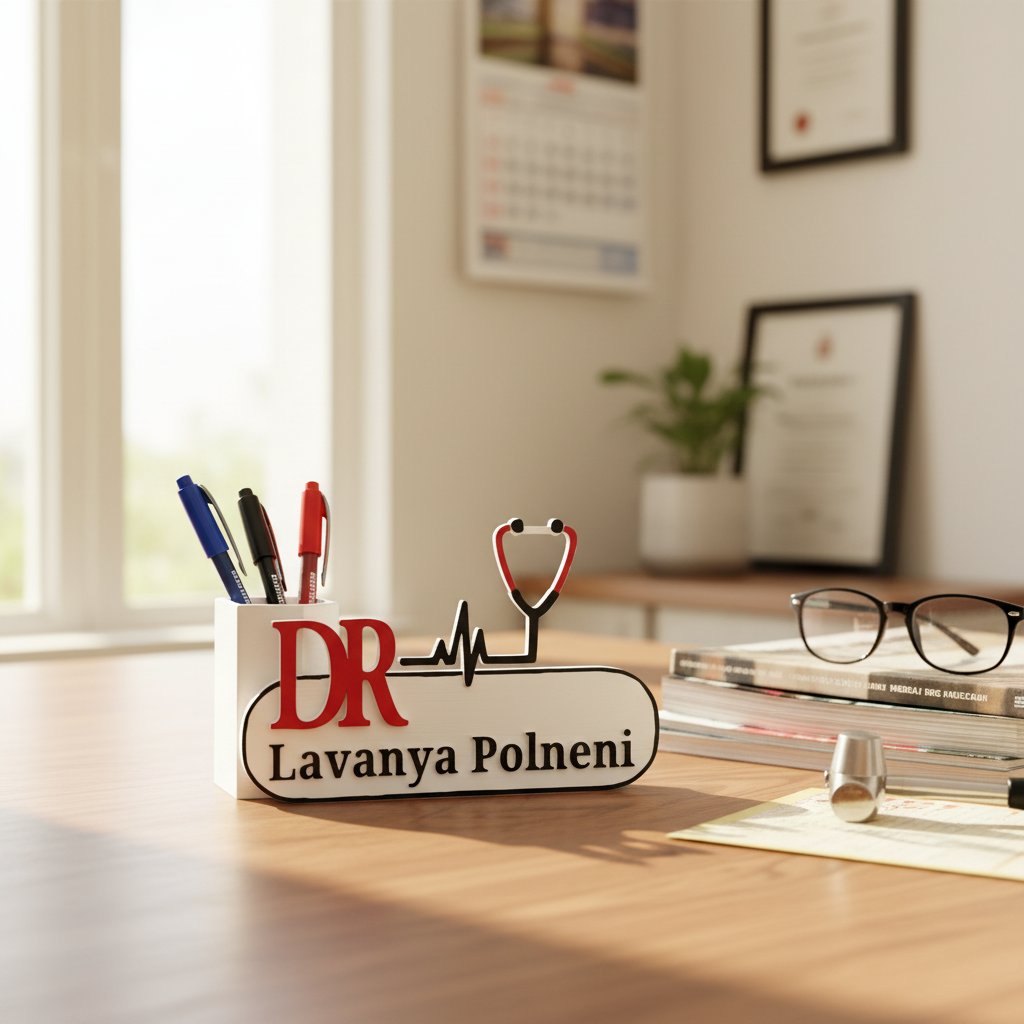 Looking for a thoughtful and practical gift for a doctor, medical student, or healthcare professional? This personalized pen stand is an excellent choice for birthdays, graduations, doctor's day, clinic inaugurations, or as a heartfelt thank-you gift. It's a daily reminder of their hard work and dedication, beautifully displayed on their desk.Surprise your favorite physician with a gift that combines utility with personal sentiment, ensuring their workspace stays tidy and inspiring.