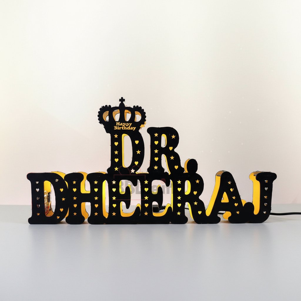 Answer: The lamp is crafted from premium quality MDF wood for the base structure and high-grade acrylic for the illuminated name panel, which is UV printed.