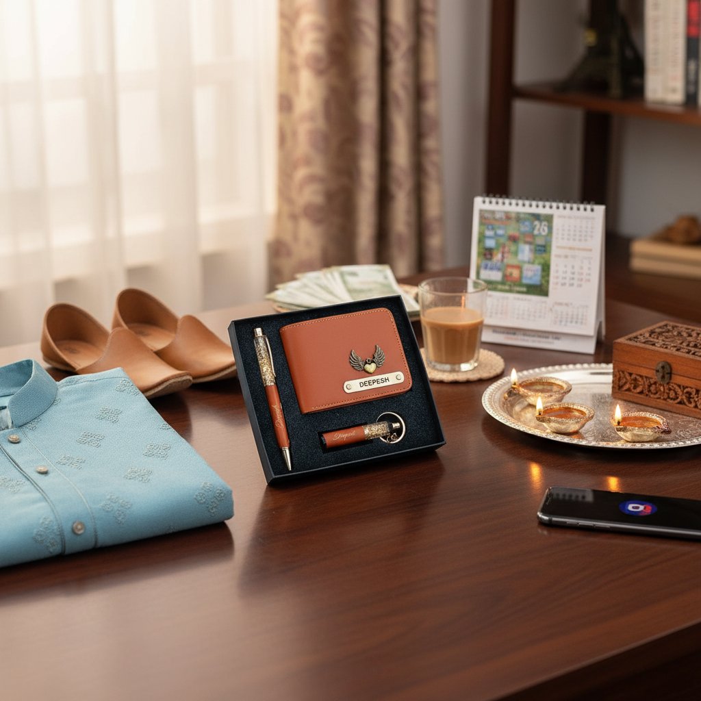 Elevate His Style with Our Personalized Faux Leather Wallet Combo Gift Set 🎁