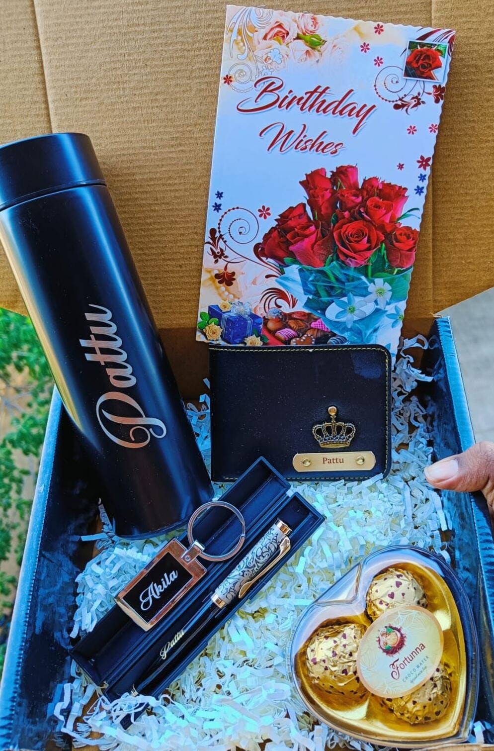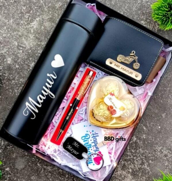 A: Yes, you can personalize bottle , wallet ,pen,keychain with name.for wallet you can add you fav charm from the product photo list, if need any spesific gift card can call us on 9177509388