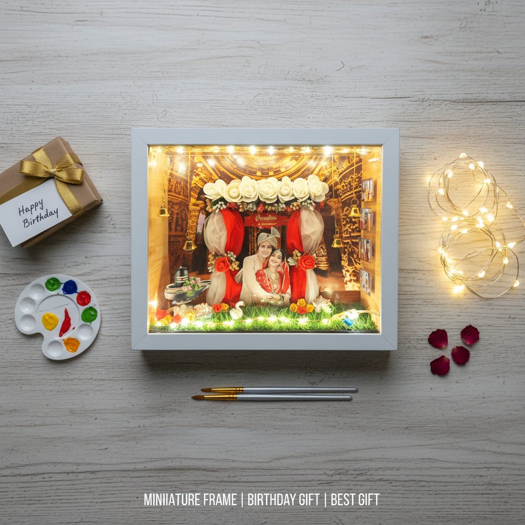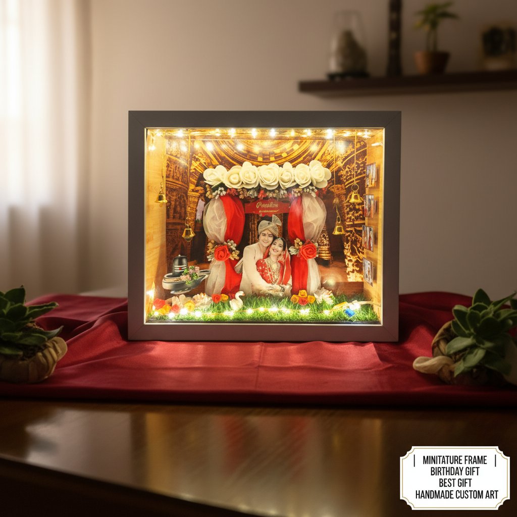 Discover the most adorable and enchanting addition to our collection – the Custom 3D Miniature Couple Frame! This exquisite piece of handmade art is designed to bring your cherished memories to life with incredible depth and detail. Each frame is meticulously crafted with mini elements, creating a realistic 3D look that's truly captivating.