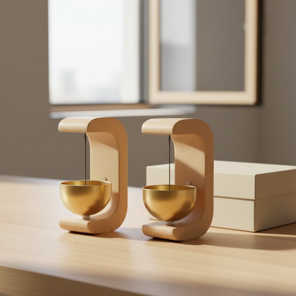 ✨ Elegant Design: Each bell boasts a minimalist wooden frame with a gleaming brass bell, blending seamlessly with any home decor style.