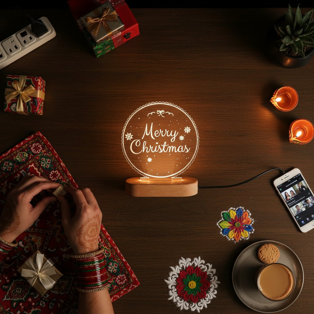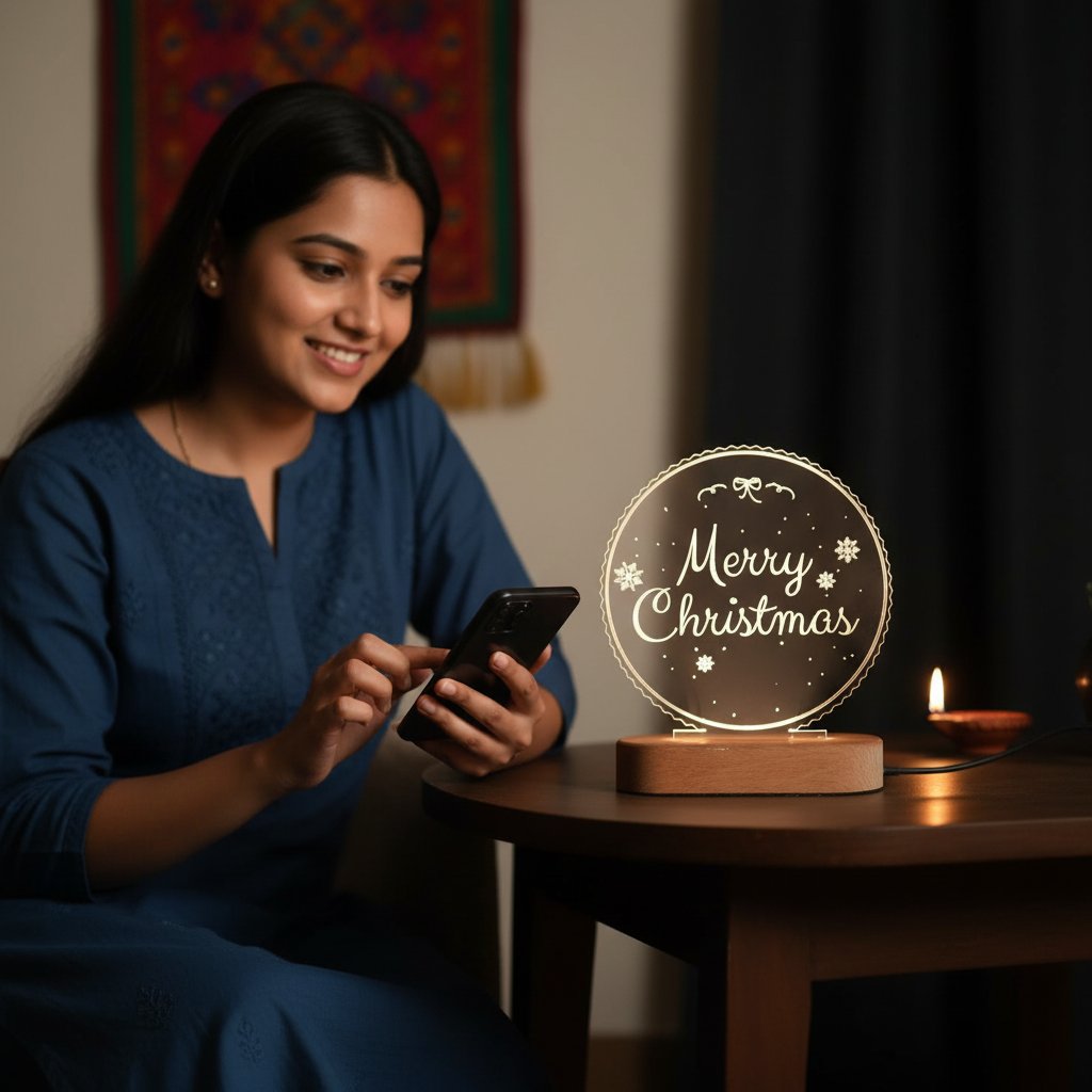 Bring the magical spirit of Christmas into your home with our enchanting Merry Christmas LED Sign. Designed to cast a warm, inviting glow, this sign is the perfect addition to your festive decorations, creating a cozy and joyous atmosphere for family and friends.Crafted with precision, the elegant "Merry Christmas" script, adorned with delicate snowflakes and starry dots, glows beautifully from its durable acrylic panel. Resting on a sturdy, stylish wooden base, this piece is not just a light, but a statement of holiday cheer.