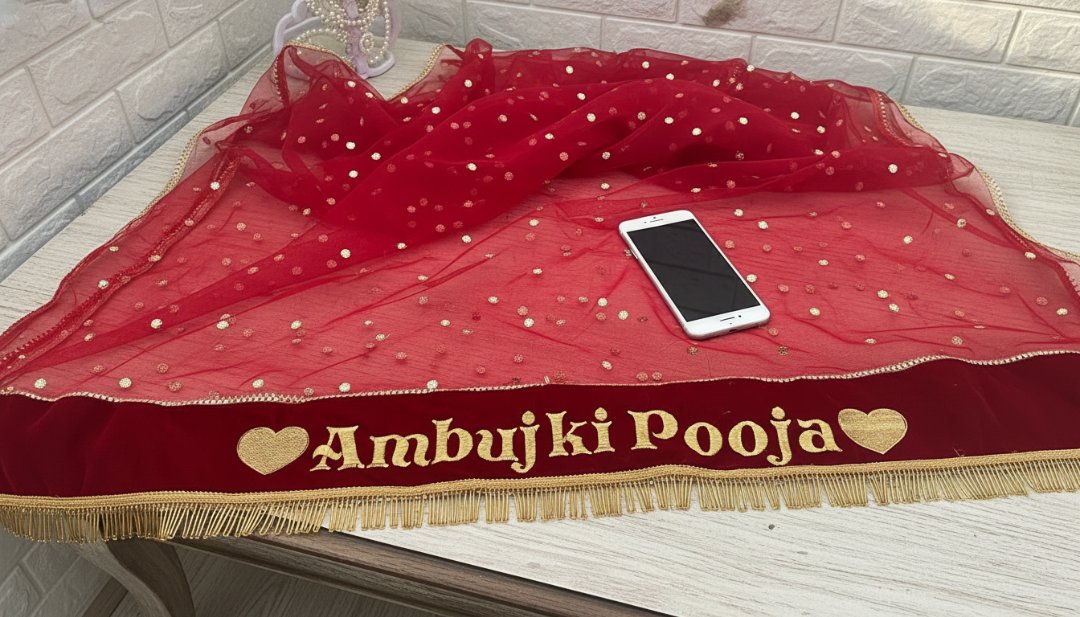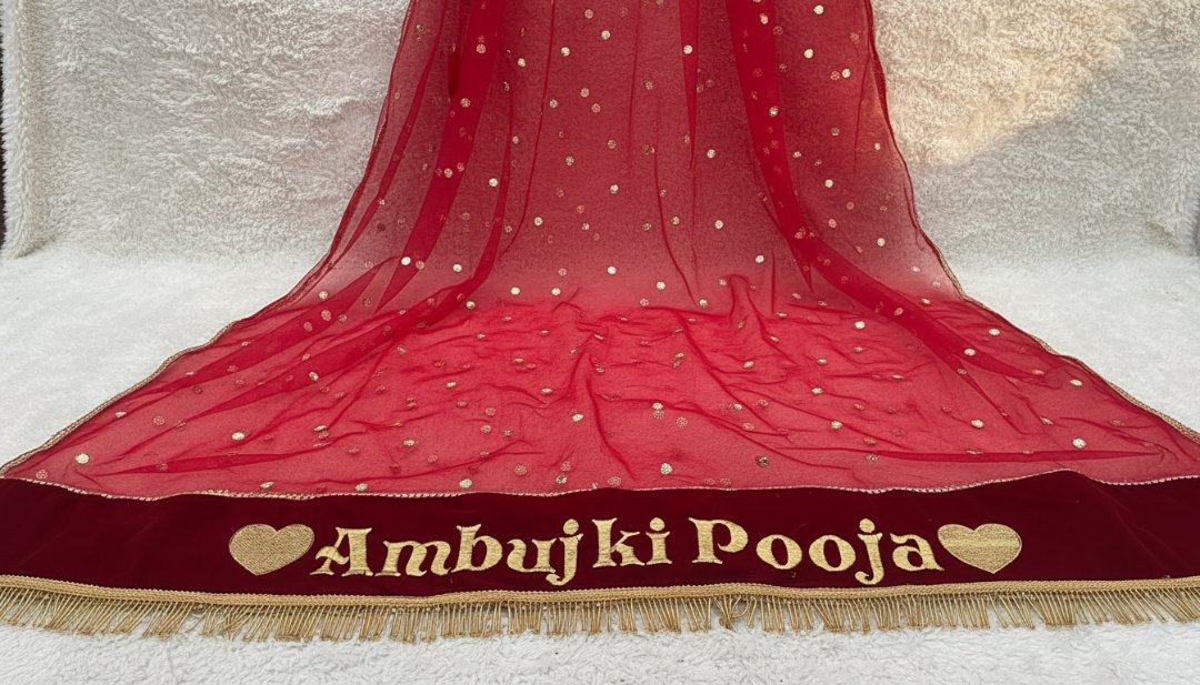 👰✨ Personalized Bridal Name Dupatta: Your Signature Touch