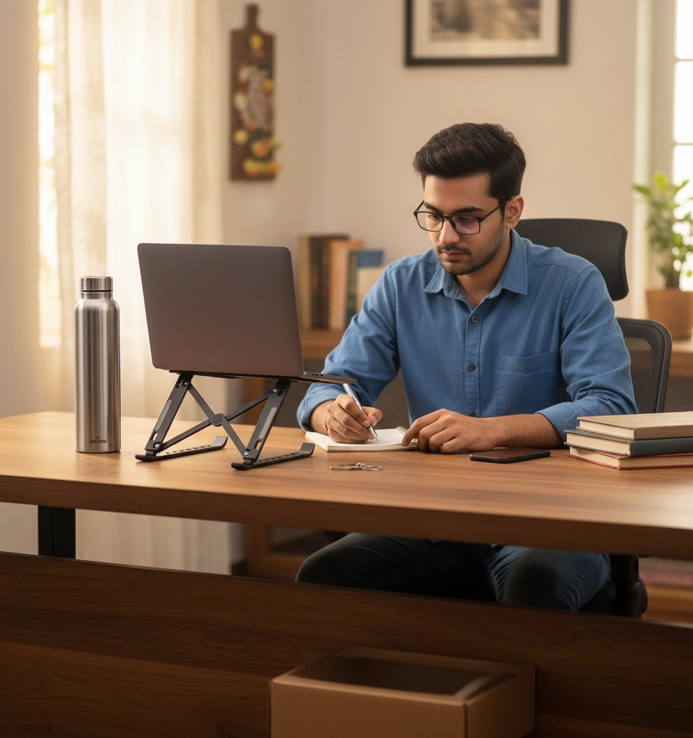 🔑Portable Laptop Stand: Enhance your workspace ergonomics with a compact, foldable laptop stand, ideal for comfort and productivity on the go.