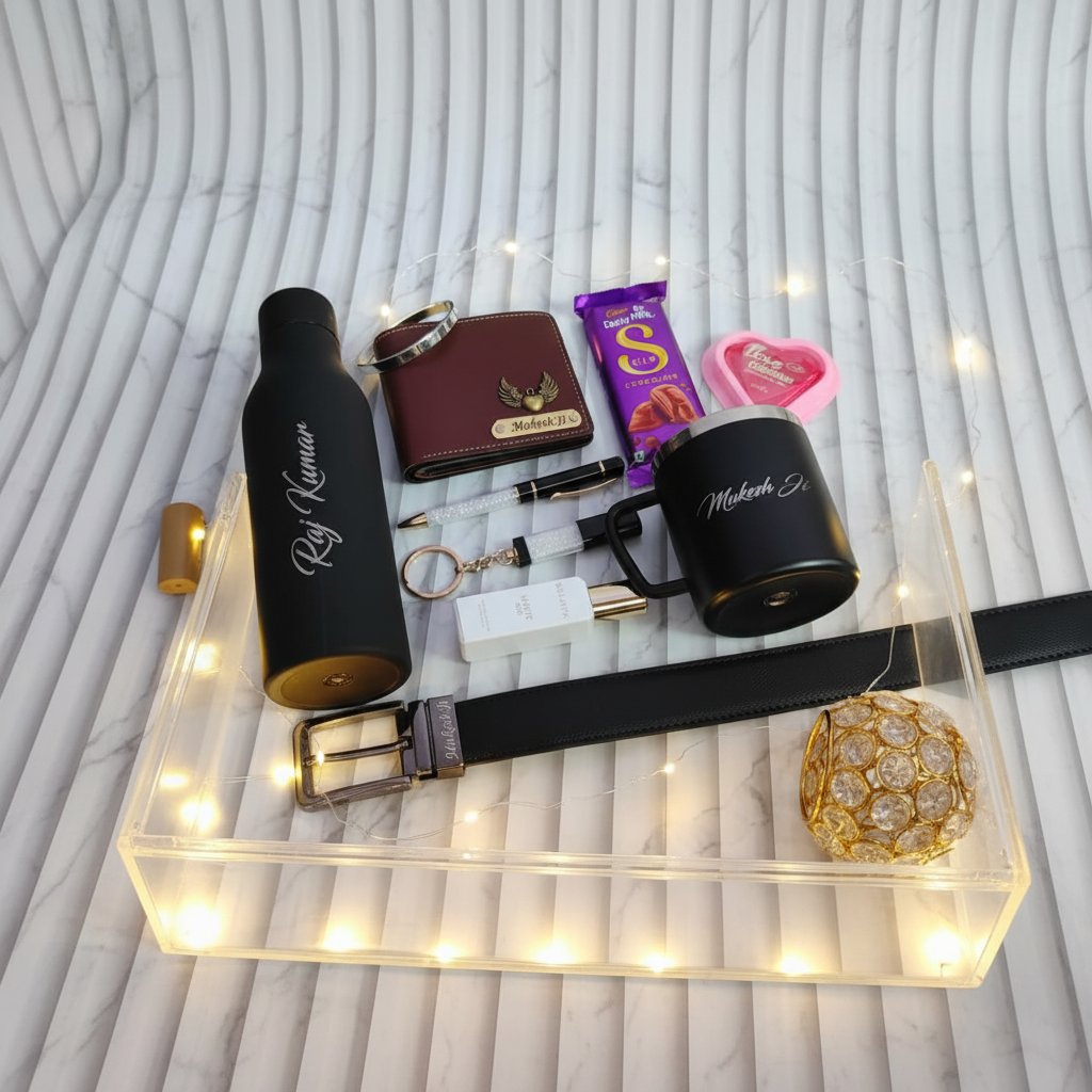 The Essential Hamper for Her 4.0 isn't just a collection of items; it's an experience. The thoughtful personalization on multiple items—from the flask and mug to the wallet, pen, keychain, and belt—shows immense care and attention to detail. It's a versatile gift suitable for birthdays, anniversaries, Mother's Day, Valentine's Day, or simply to show appreciation. The stunning LED packaging elevates the presentation, making every moment of unwrapping truly special. Give her a gift that combines elegance, utility, and heartfelt sentiment.