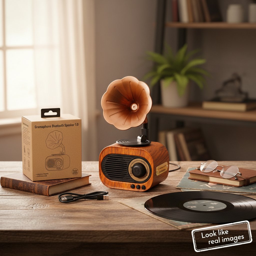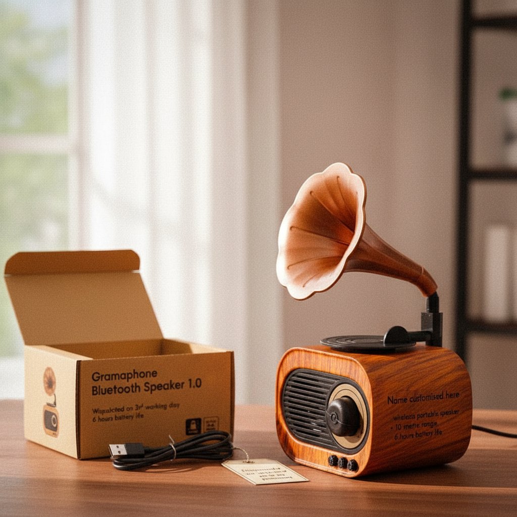 Rediscover Sound with the Personalized Vintage Gramophone Bluetooth Speaker 🎶