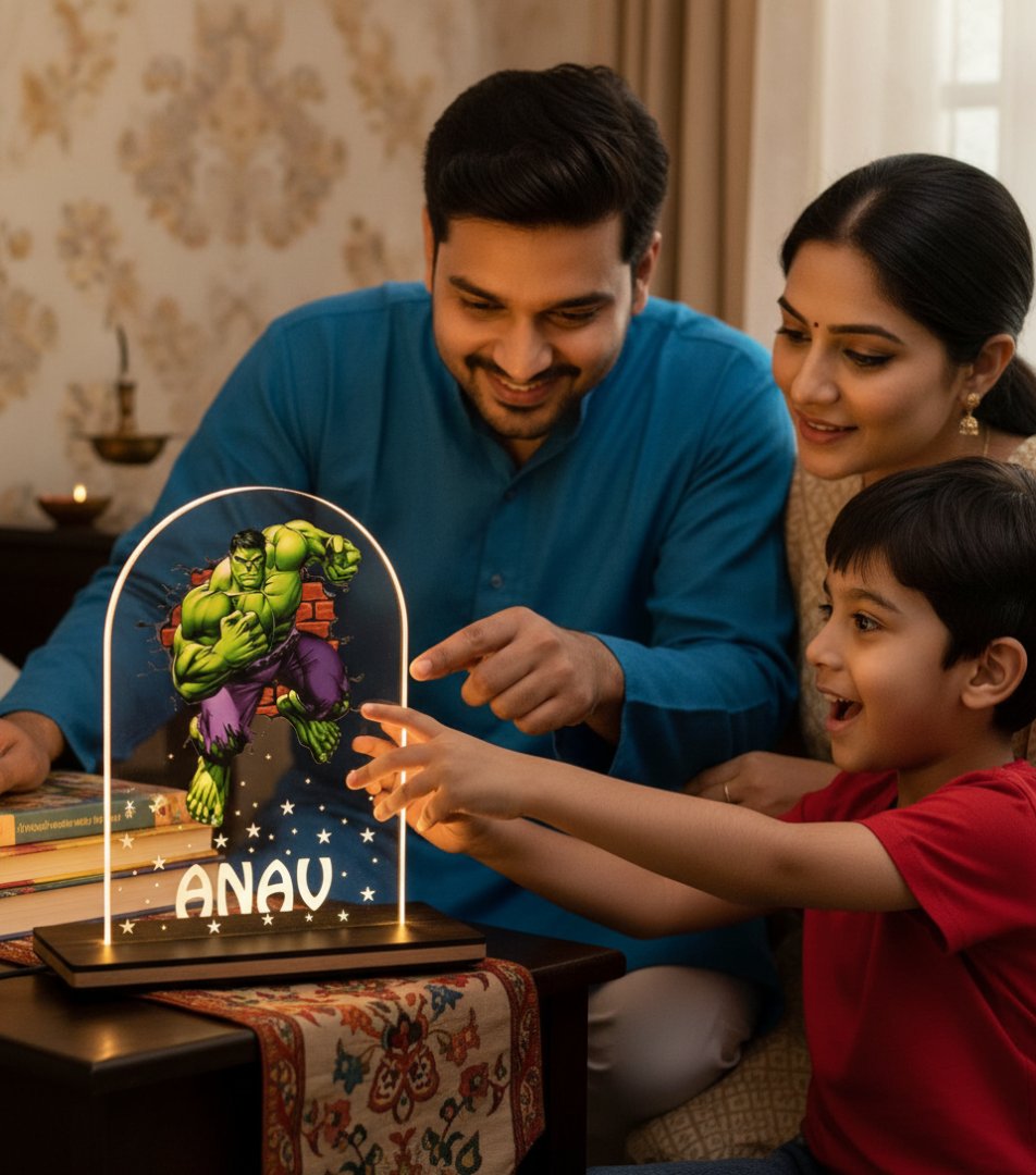 Looking for the ultimate present for a superhero fan? Our Personalized Hulk LED Table Lamp is a smashing choice for birthdays, holidays, or just because! It's more than a toy; it's a functional decor piece that adds a touch of magic and personalization to their room. It also makes an exceptional and memorable return gift for parties, leaving a lasting impression on every little guest. Plus, with FREE SHIPPING and dispatch in just 2 days, your perfect gift will arrive quickly!