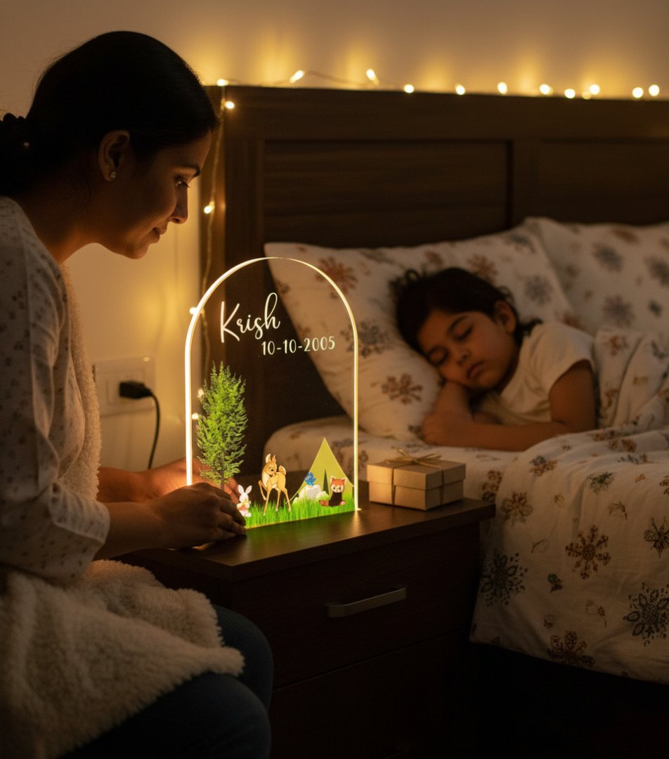 Enchanting Personalized Kids LED Night Light - Woodland Theme