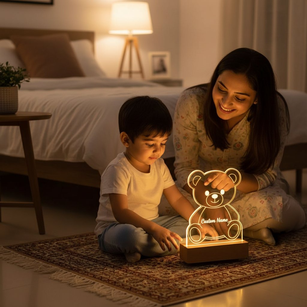 Personalized LED Teddy Bear Night Light - Custom Name Acrylic Lamp ✨