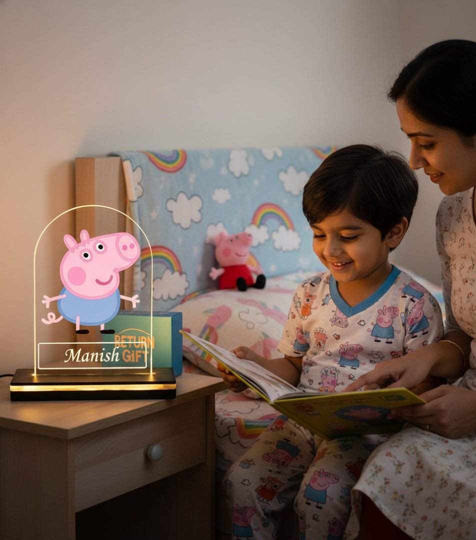 πSearching for that perfect present that stands out? Look no further! This personalized Peppa Pig LED lamp is an ideal gift for birthdays, special occasions, or simply to show your love. Kids adore seeing their name alongside their favorite character, making it a cherished item they'll love for years. It's also an excellent option for return gifts, leaving a lasting impression on every young guest!Its soft glow provides a comforting night light, while the vibrant design doubles as charming room decor. Give the gift of light, joy, and personalization!