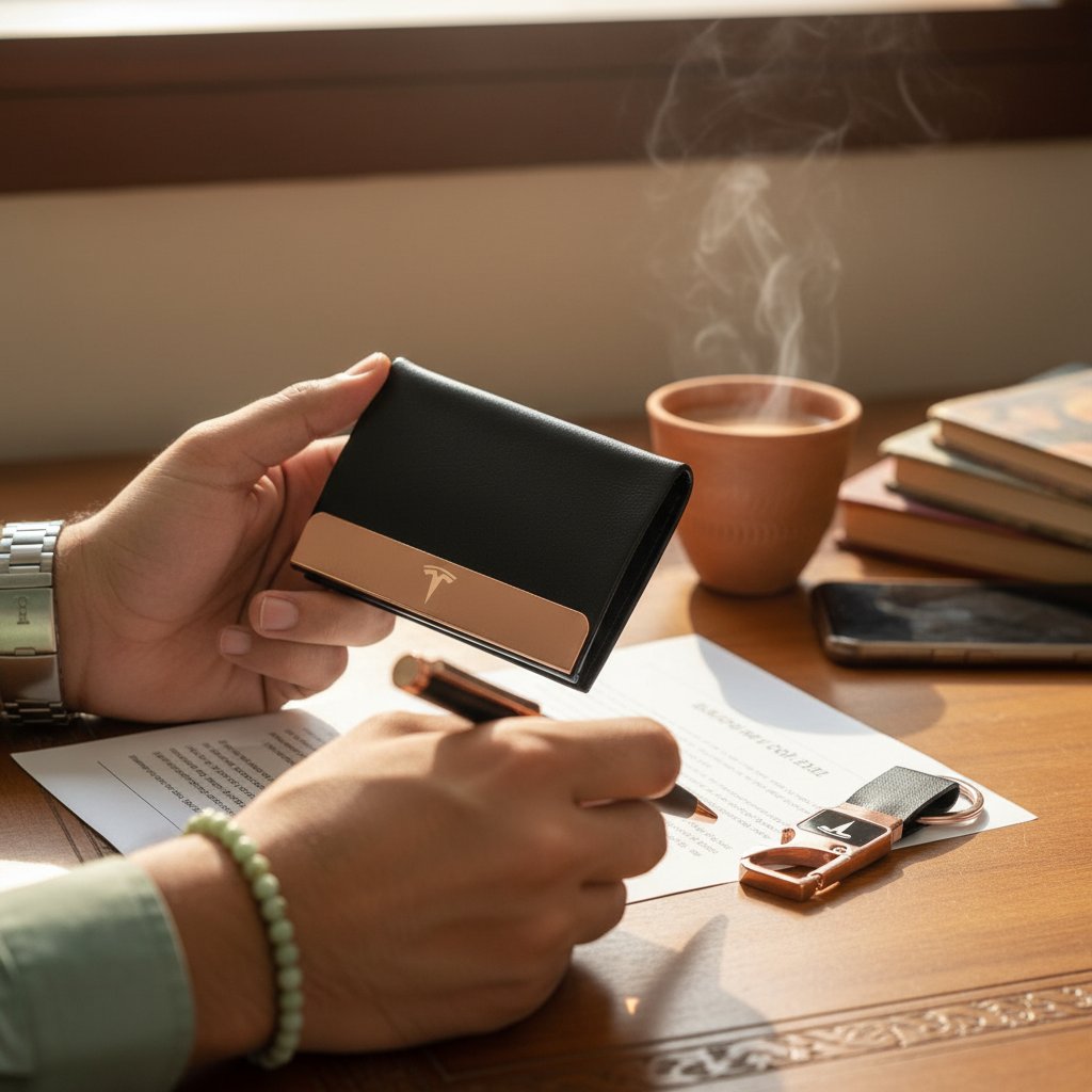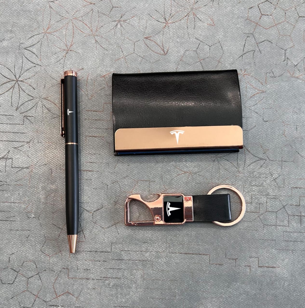 Rose Gold Card Holder: A sleek and stylish holder for your essential cards.Rose Gold Pen: Experience smooth writing with this elegant, personalized pen.Rose Gold Keychain: A sophisticated accessory to keep your keys organized.