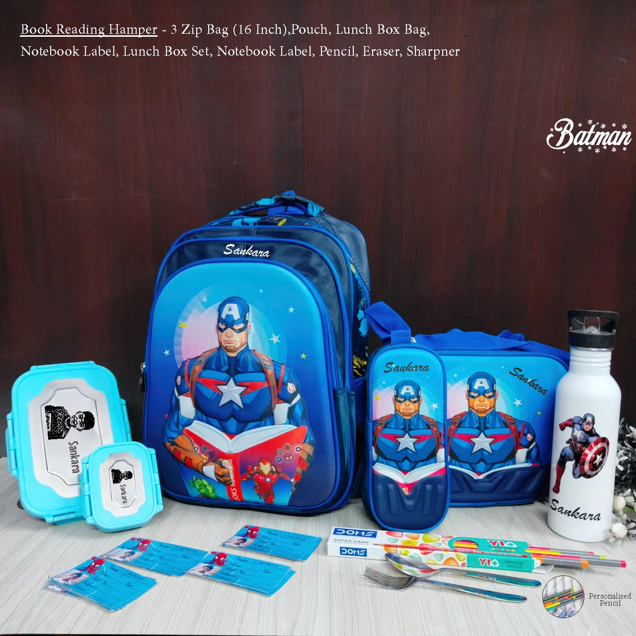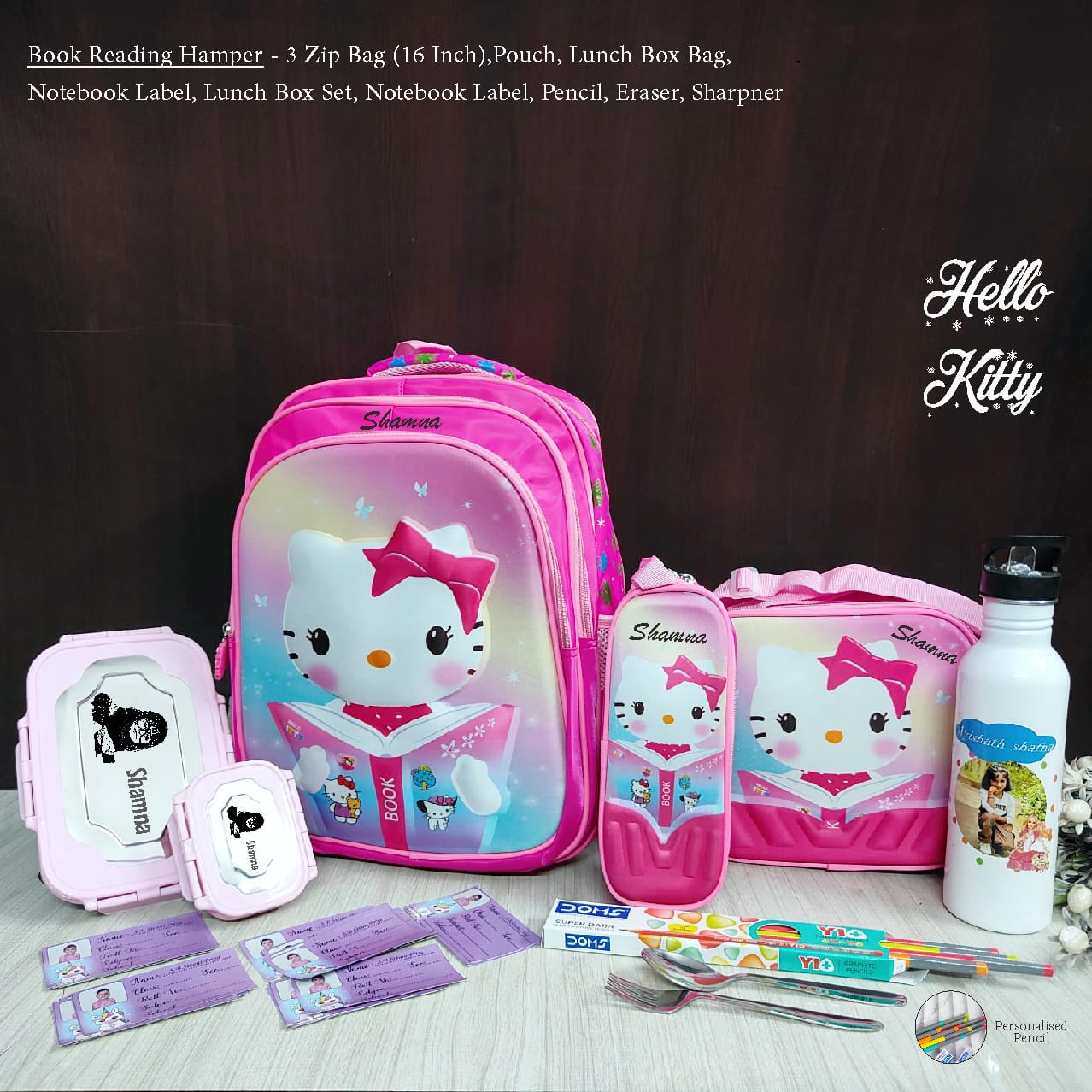 📚Give your child the ultimate back-to-school surprise with our Customised Book Reading Theme Essential School Hamper! Designed for young readers and adventurers, this comprehensive set brings joy and organization to their daily school life. Make every school day an exciting chapter with their favorite characters and personalized touch!