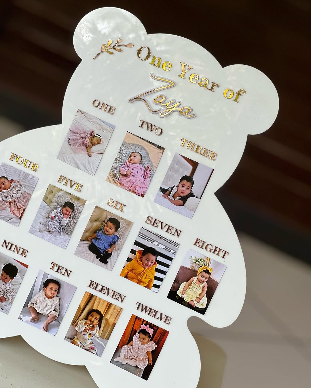 Celebrate your little one's incredible journey through their first year with our adorable and customizable Teddy Bear Shaped Photo Frame! This beautiful keepsake is the perfect way to display those precious monthly milestones, capturing all the growth and joy from newborn to their first birthday.
