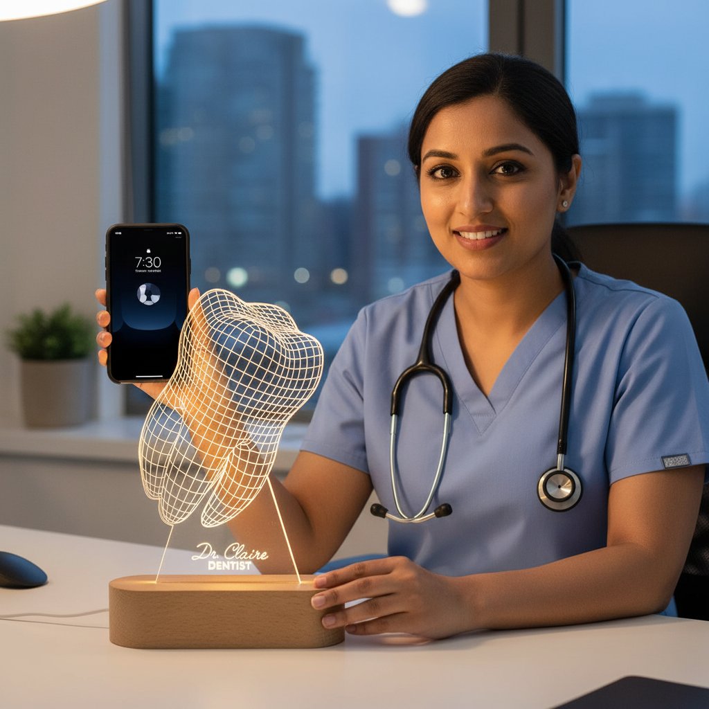 Searching for the perfect gift for a dentist, dental hygienist, dental student, or orthodontist? Look no further! This personalized tooth LED lamp is more than just a light; it's a symbol of their dedication and hard work. It's an ideal present for:
