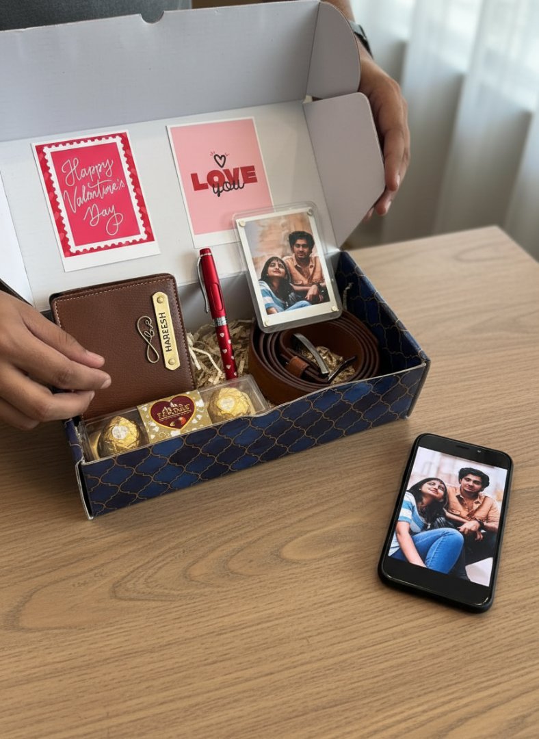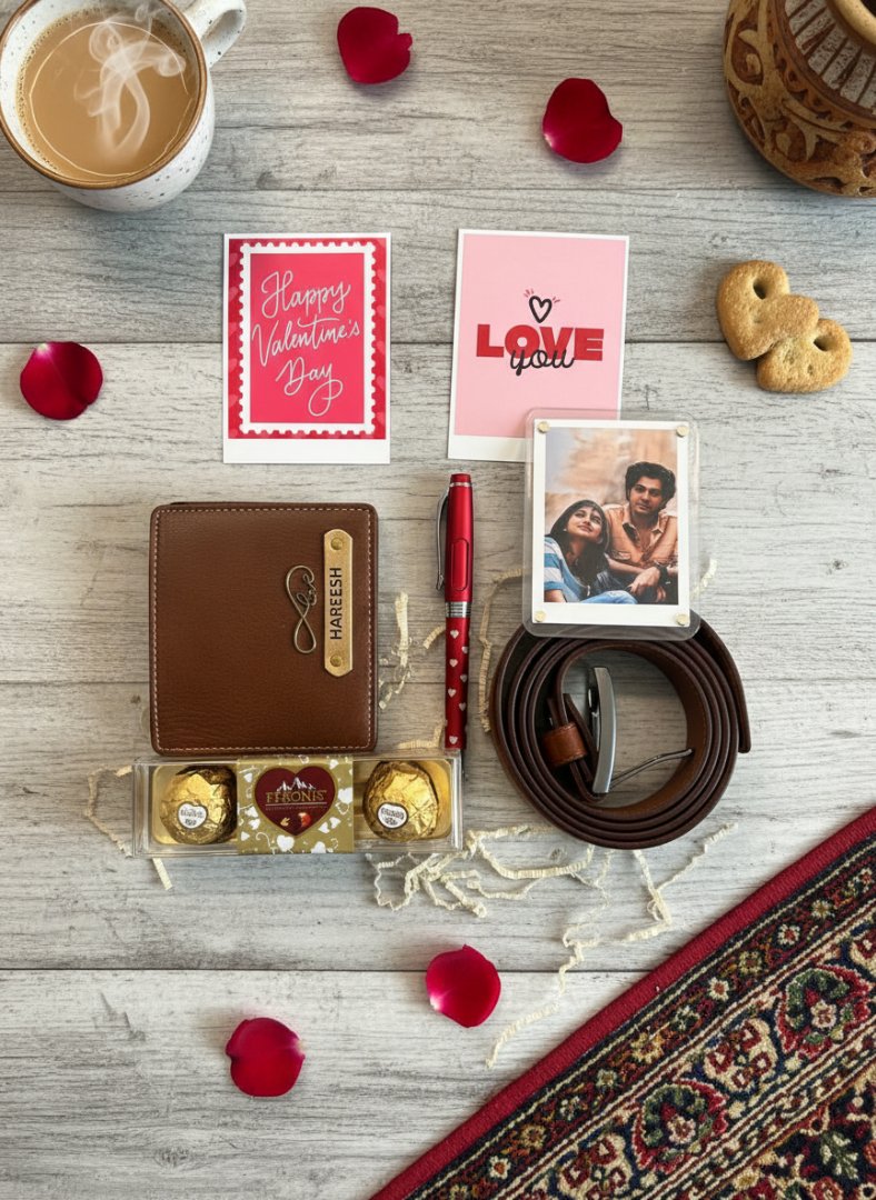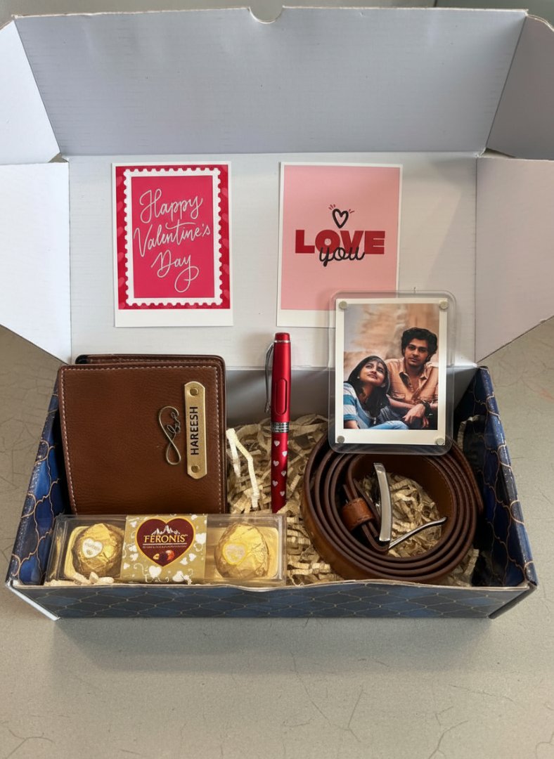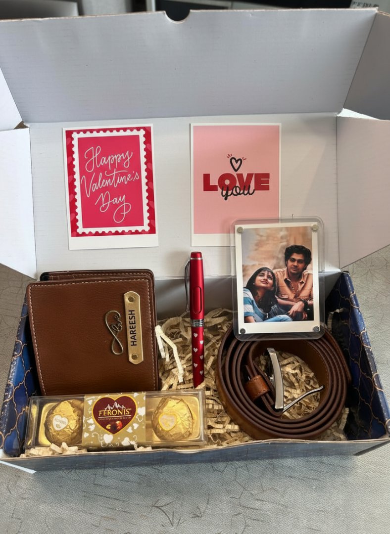 Searching for a gift that truly stands out? The Valentine Combo 2.0 offers a perfect blend of utility, sentiment, and personalization, making it an ideal choice for your boyfriend, husband, or a special man in your life. It's not just a gift; it's an experience:Thoughtful & Personal: Show you care with customized items.Practical & Luxurious: High-quality essentials he'll use daily.Complete Package: Everything you need for a memorable celebration in one elegant box.Effortless Gifting: Beautifully packaged and shipped directly to you.